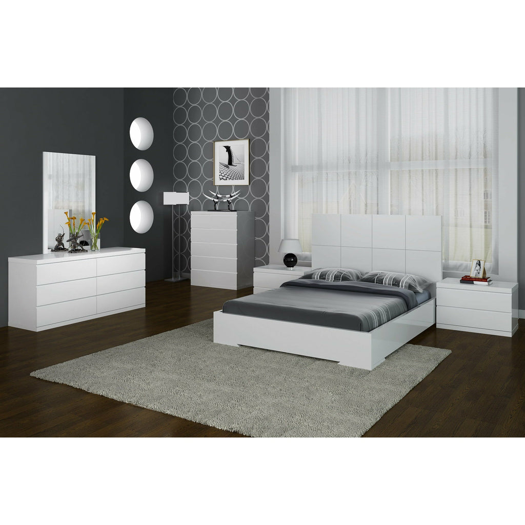 Comes in high gloss white and six self-close drawers. The Anna Dresser is also available as a single dresser with three drawers, (Mirror sold separately).