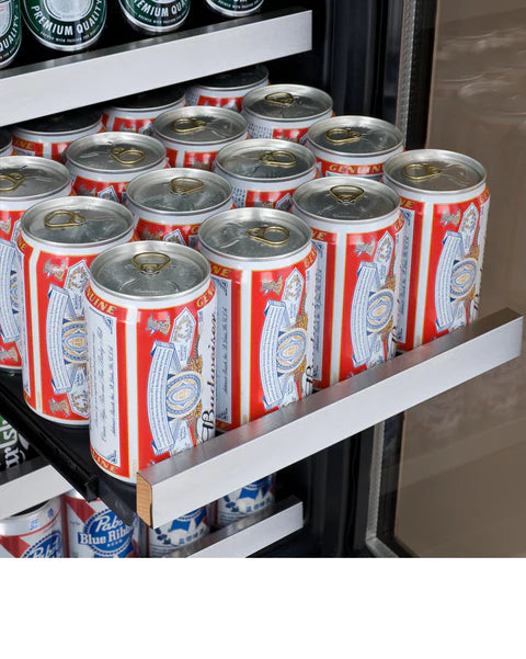 Shelves Extend Effortlessly:Easily access all of your beverages thanks to shelves that glide out smoothly on ball-bearing tracks.