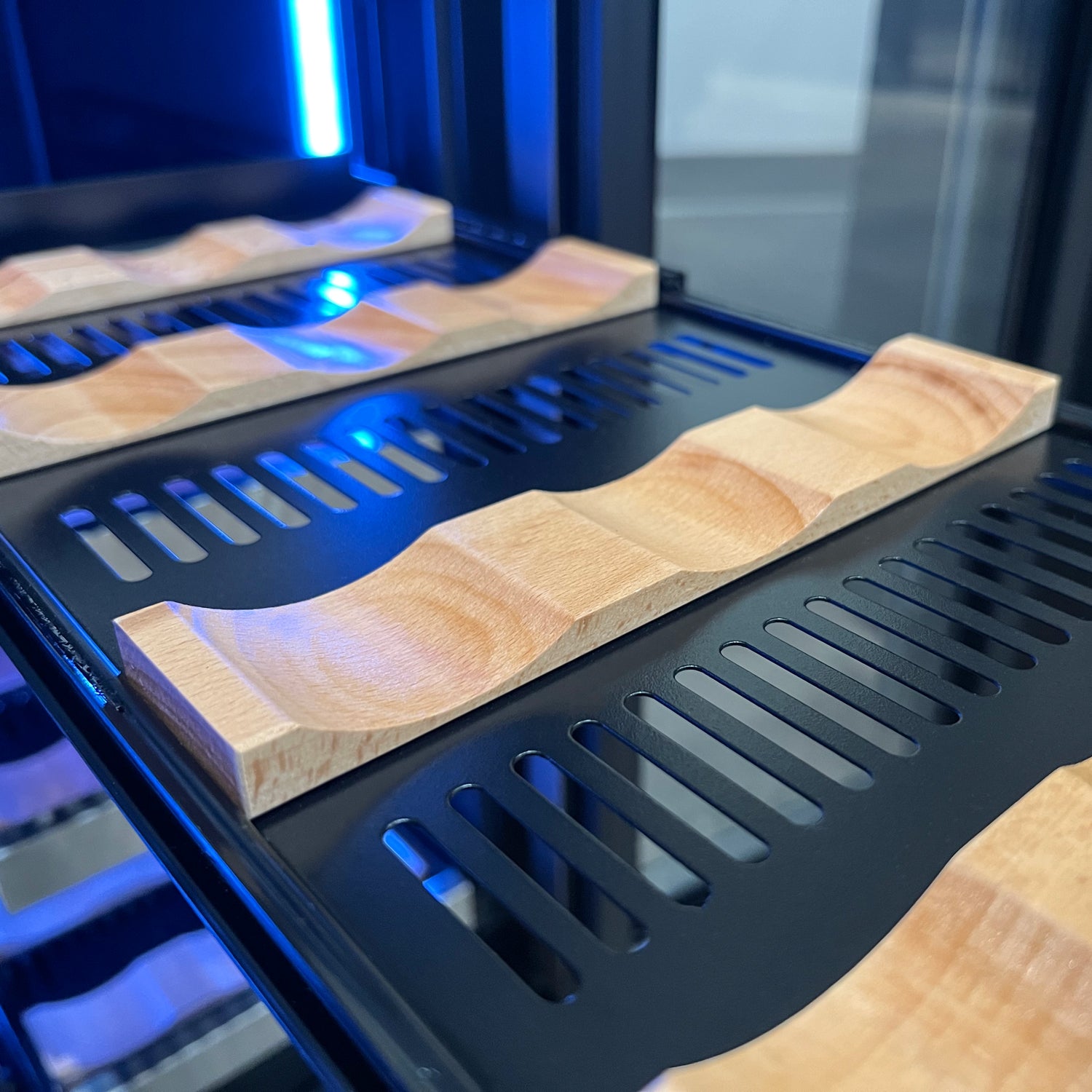 Allavino's exclusive FlexCount shelves give you ultimate flexibility and accessibility, regardless of bottle size. Spacing between each shelf gives you enough clearance to not worry about racks scraping your bottle labels.