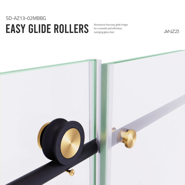 ANZZI Madam Series 60 in. by 76 in. Frameless Sliding Shower Door with Handle SD-AZ13-02MB