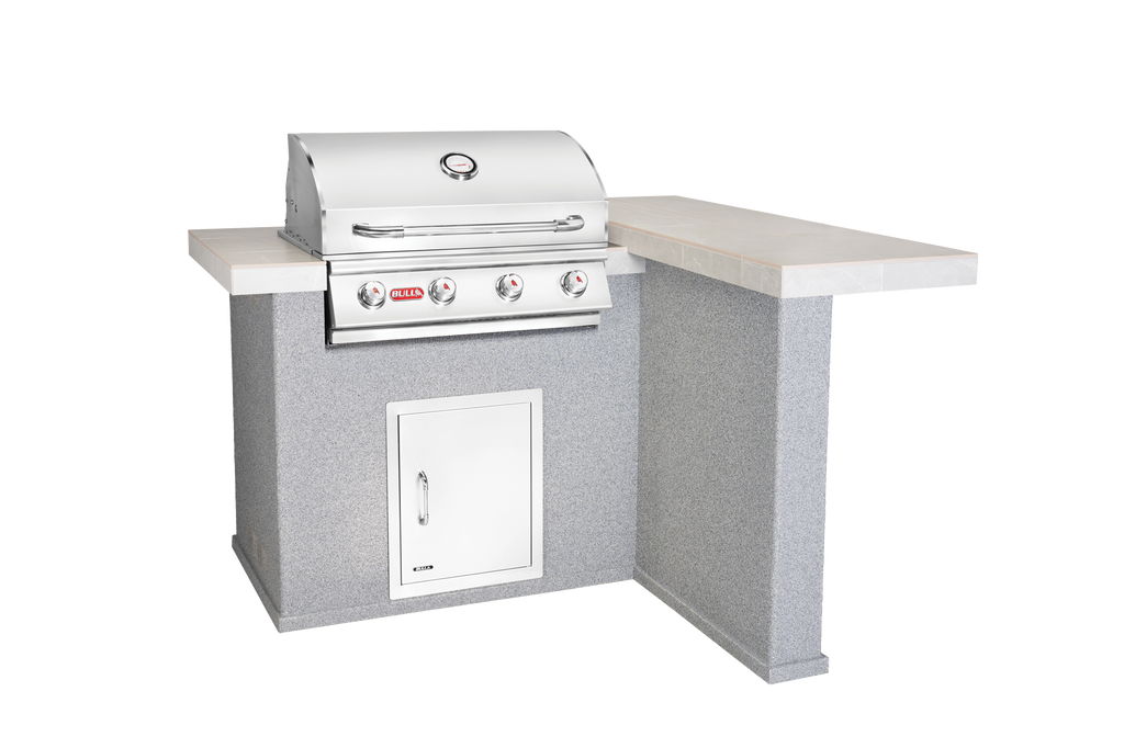 The Outlaw grill head is a 4-Burner 30''stainless steel built-in gas barbecue grill. It is included with this Outdoor Kitchen. The Bull Outlaw Drop-In Grill is full of power and features to make your outdoor cooking experiences sizzle.