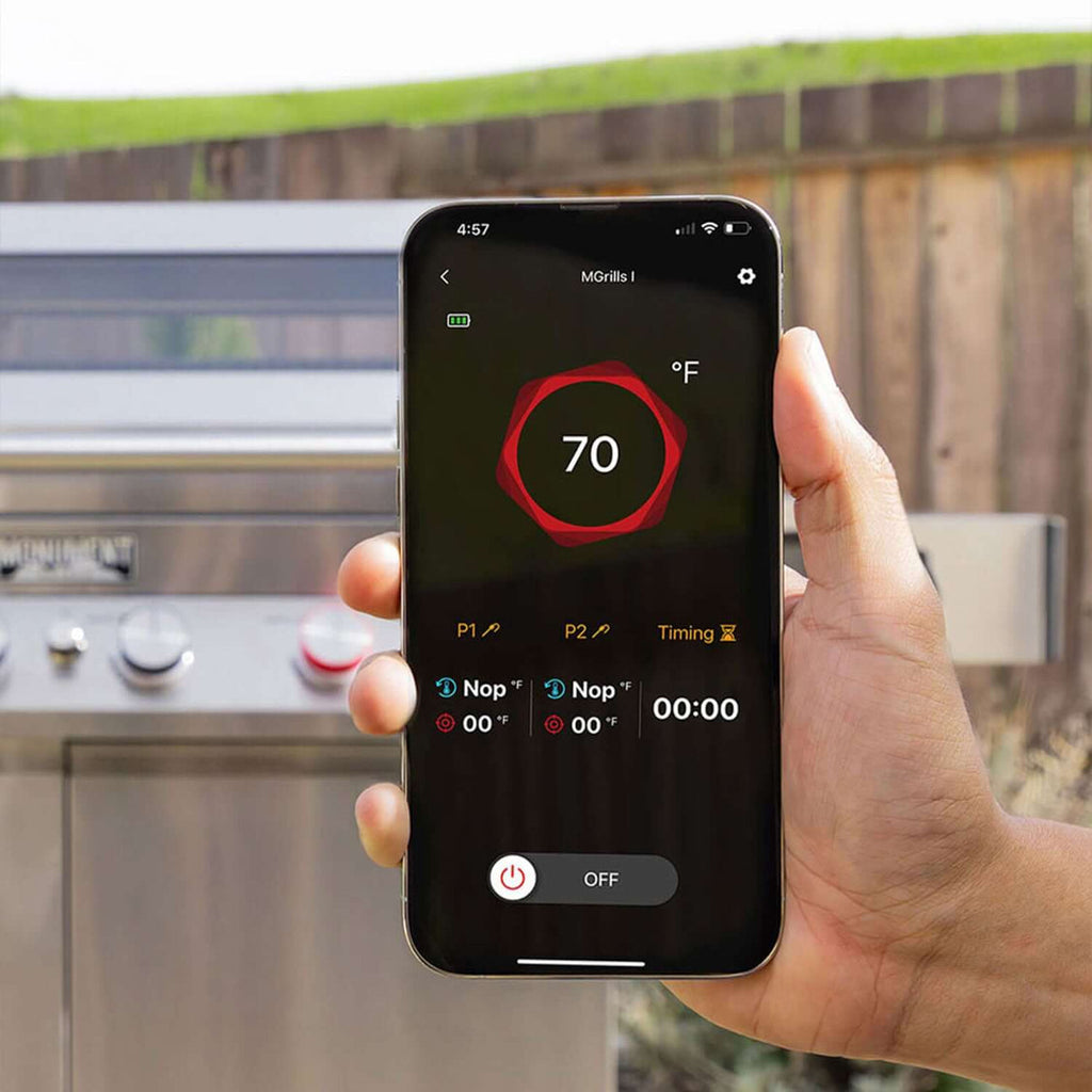 Monument Grills APPhe app connects to your grill via Bluetooth, allowing you to monitor your grill and food temperatures from your smartphone or tablet. With a range of up to 65 feet, you can relax indoors or entertain guests while your food cooks.