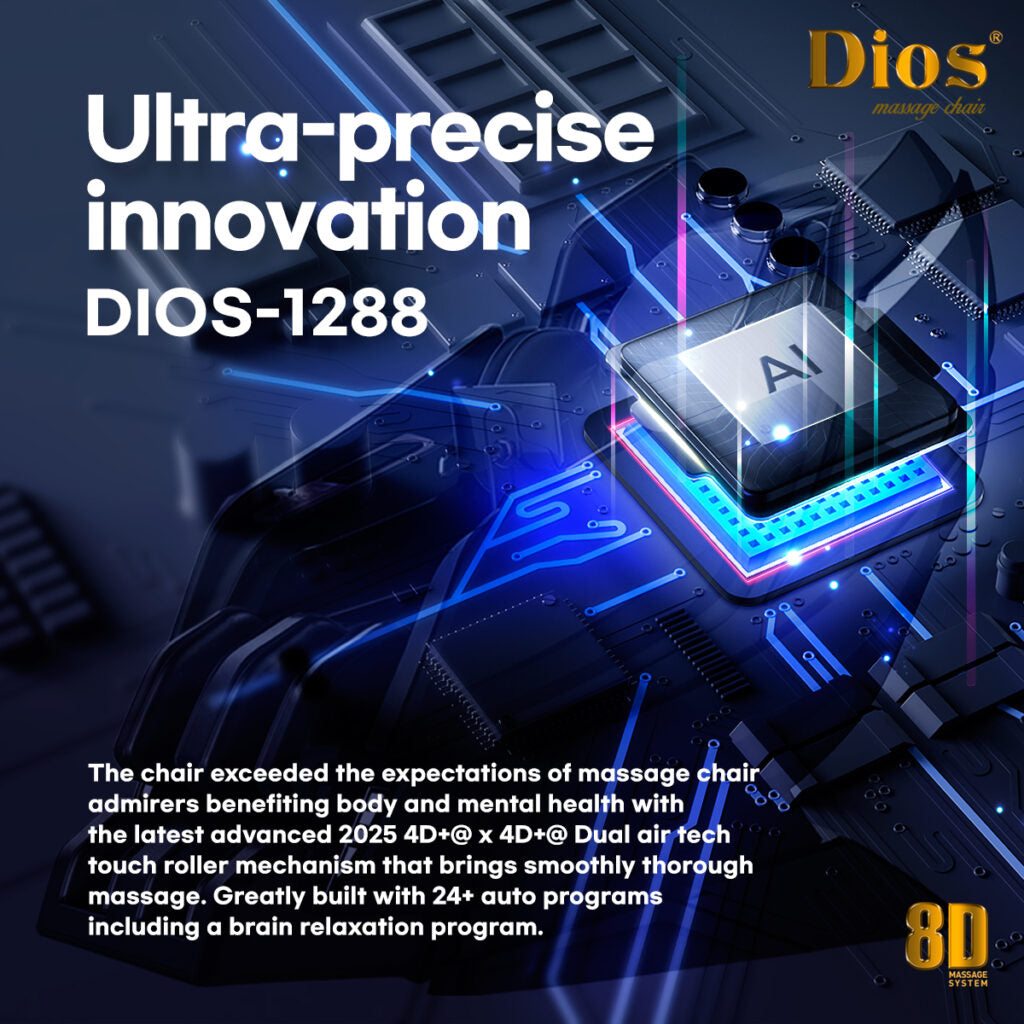 Dios Massage Chair 8D Dual Core Air Tech Touch Roller SL-track with Brain Relaxation Program Dios-1288 Black