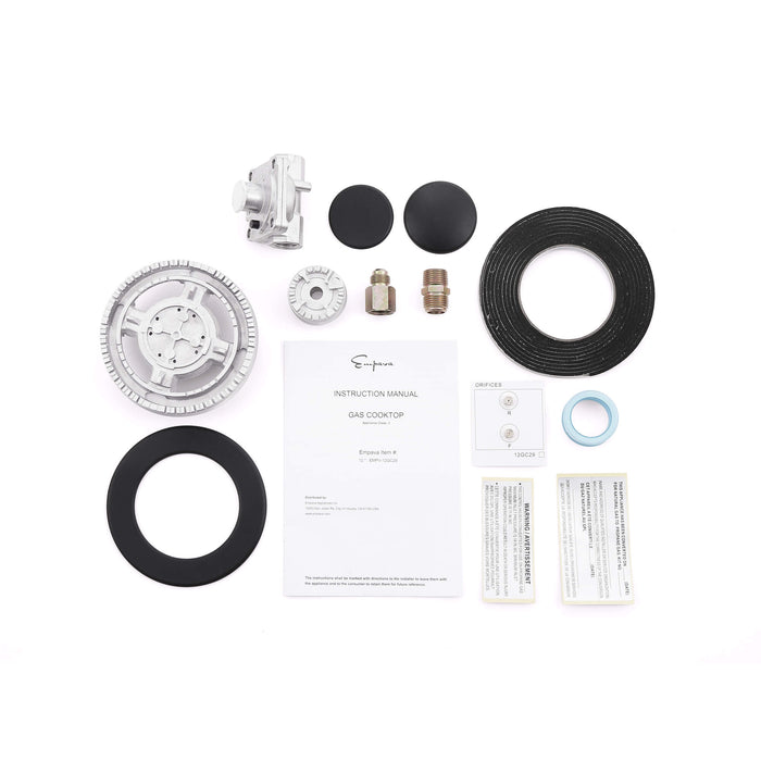 The Empava gas cooktop stove delivers the same maximum BTU power to propane and natural gas cooktops (Default Natural gas)-works manually without electricity, capable for multi-purpose such as RVs, light cooking family, small kitchen, mobile home, and outdoor use, etc. (Both LPG/NG Nozzles Included).