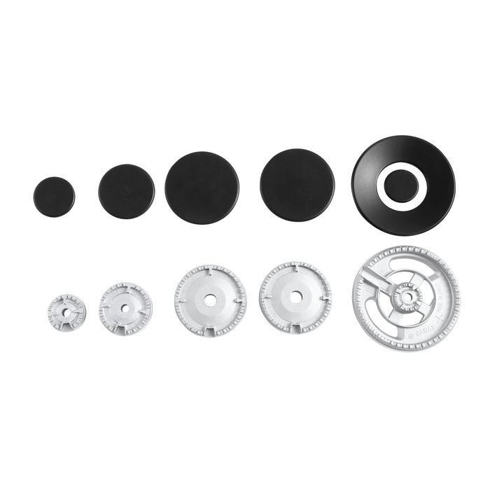 Empava recessed gas cooktop offers you the flexibility you need to make all your favorite dishes with precision and flair 4 different versatile burner sizes with an 18000-BTU Triple Ring burner(Center), double 12000-BTU Rapid burner(Top left+ Top Right), a 9500-BTU Semi-Rapid burner(Lower Left) and a 6000-BTU Auxiliary burner(Lower Right) distribute even heat for simmer, boil, stir-frying, steaming, melting or even caramelizing!