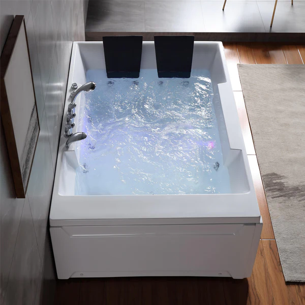 The Whirlpool Rectangular Bathtub is the ideal place to relax, unwind, and rejuvenate after a long day. The LED lights installed on the tub provide a natural glow that makes you feel like you're bathing under the stars —all while relaxing in your own home.