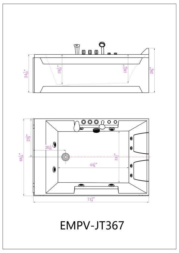The Whirlpool Rectangular Bathtub is equipped with 10 strategically placed jets that provide a deep tissue massage throughout your body as you bathe. The 1.2HP water pump provides ample power for the jet system, while the UL Certified Motor ensures durability.