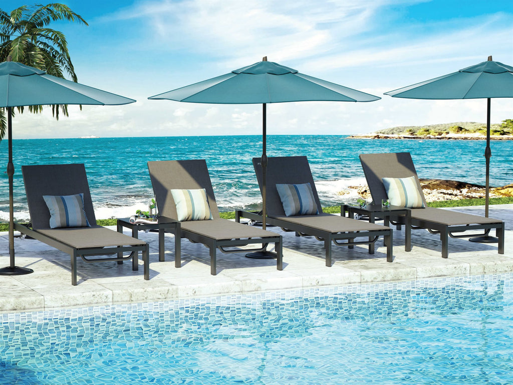 4x Allure Sling Aluminum Stackable Adjustable Chaise Lounge