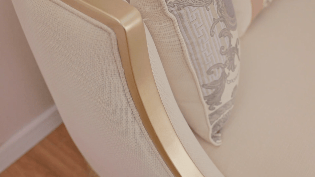The HD-6127 3PC Sofa Set adds sophisticated tranquility to any modern living room with its elegant white upholstery and striking gold frame. This versatile set, including a high quality sofa, loveseat, and chair, offers both comfort and style. The clean lines, contemporary silhouette, and plush cushions make it ideal for both casual and formal settings, elevating the ambiance of any home.