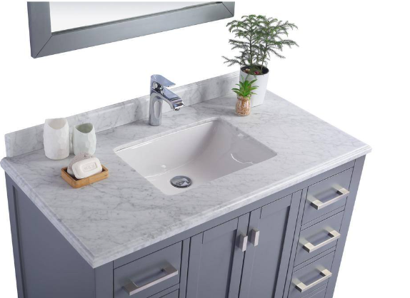 Laviva Wilson 42 in. W x 22 in. D x 34.5 in. H Bathroom Vanity in Grey with White Carrara Marble Top