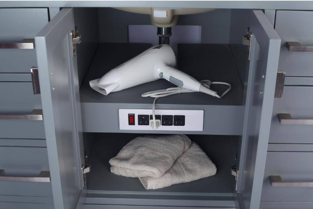 The Wilson collection is a uniquely simple yet attractive collection. It features recessed panel doors with a shaker style design that is inset within the cabinet frame. The shaker style cabinets is inspired by the furniture designed by the shakers, who were extremely skilled craftsmen and carpenters. Not sacrificing quality, the Wilson collection is constructed with solid oak wood, includes high quality soft closing rails and hinges, and a solid wood, dovetail construction drawers. Additionally, with functionality in mind, there is a 4-outlets plug to keep all your electronics plugged in and ready to use. This collection offers a variety of colors and sizes to fit your bathroom.