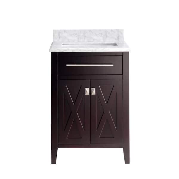 La Viva Wimbledon 24 in. W x 22 in. D x 34.5 in. H Bathroom Vanity in Brown with White Carrara Marble Top 313YG319-24B-WC