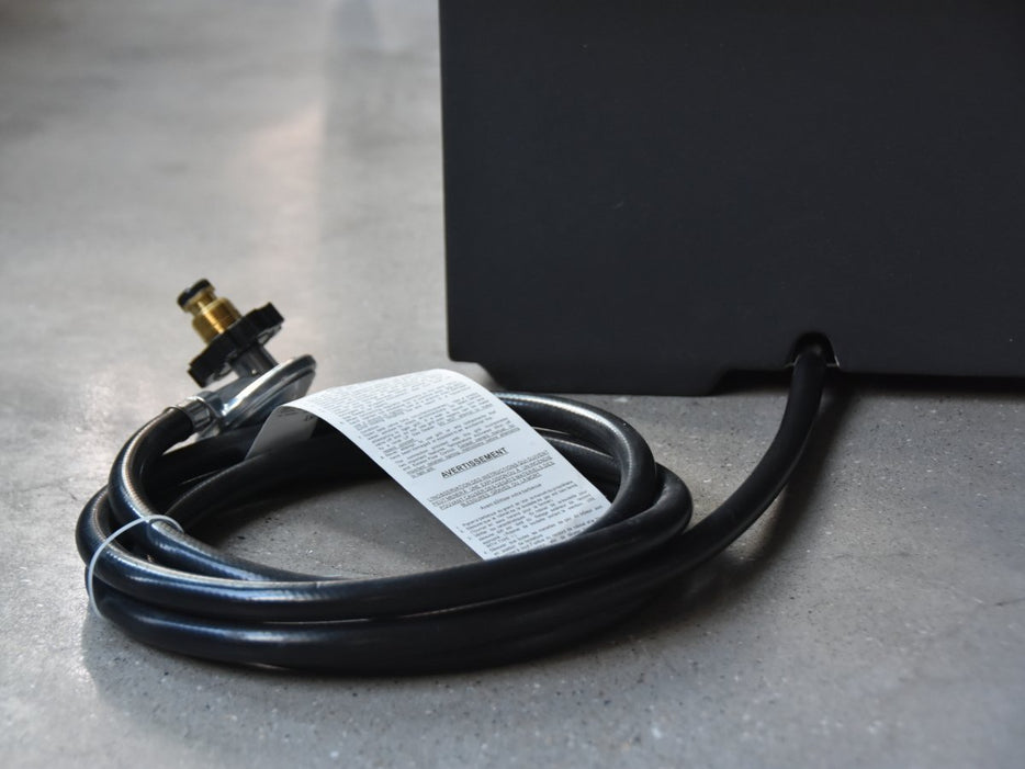 The hose provided with the Gas Fire Pit, is approximately 2.5 metres in length and 15mm in width.