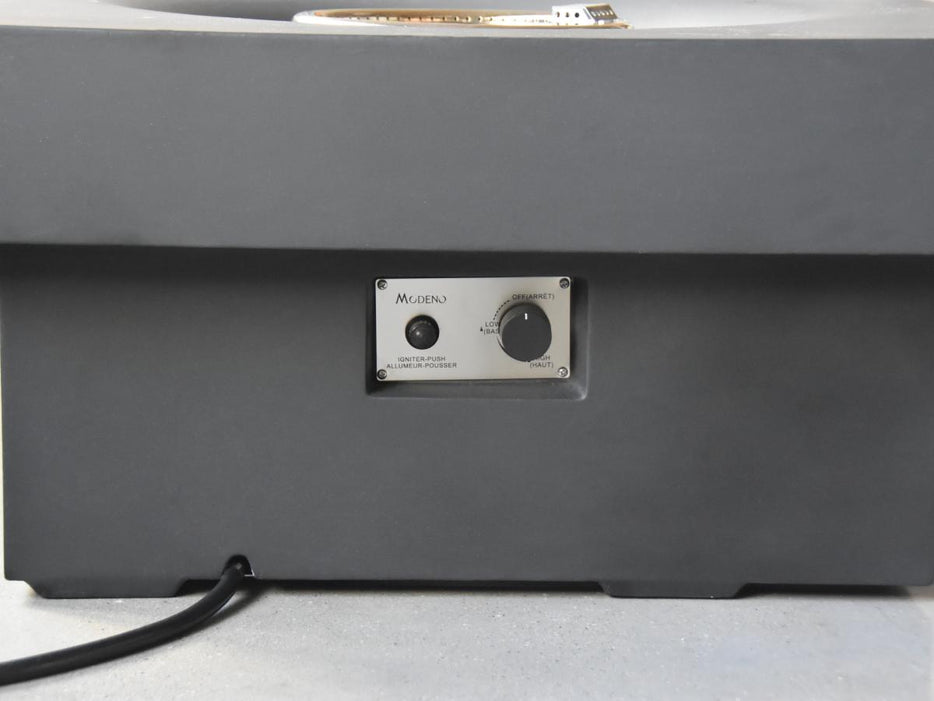 Included are 13.2 lbs. of lava rock, a PVC cover, a 10' hose, repair grout, and a AAA battery. Create a warm and inviting ambiance with the Modeno Branford Fire Table, perfect for entertaining on chilly nights or for a cozy evening under the stars.