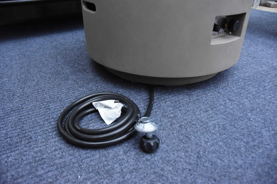 The Modeno Waterford Fire Table brings the warmth of a campfire with a chic look. The 27" round fire pit is handcrafted from glass-fiber reinforced concrete, lightweight for easy movement but durable for all-year use.