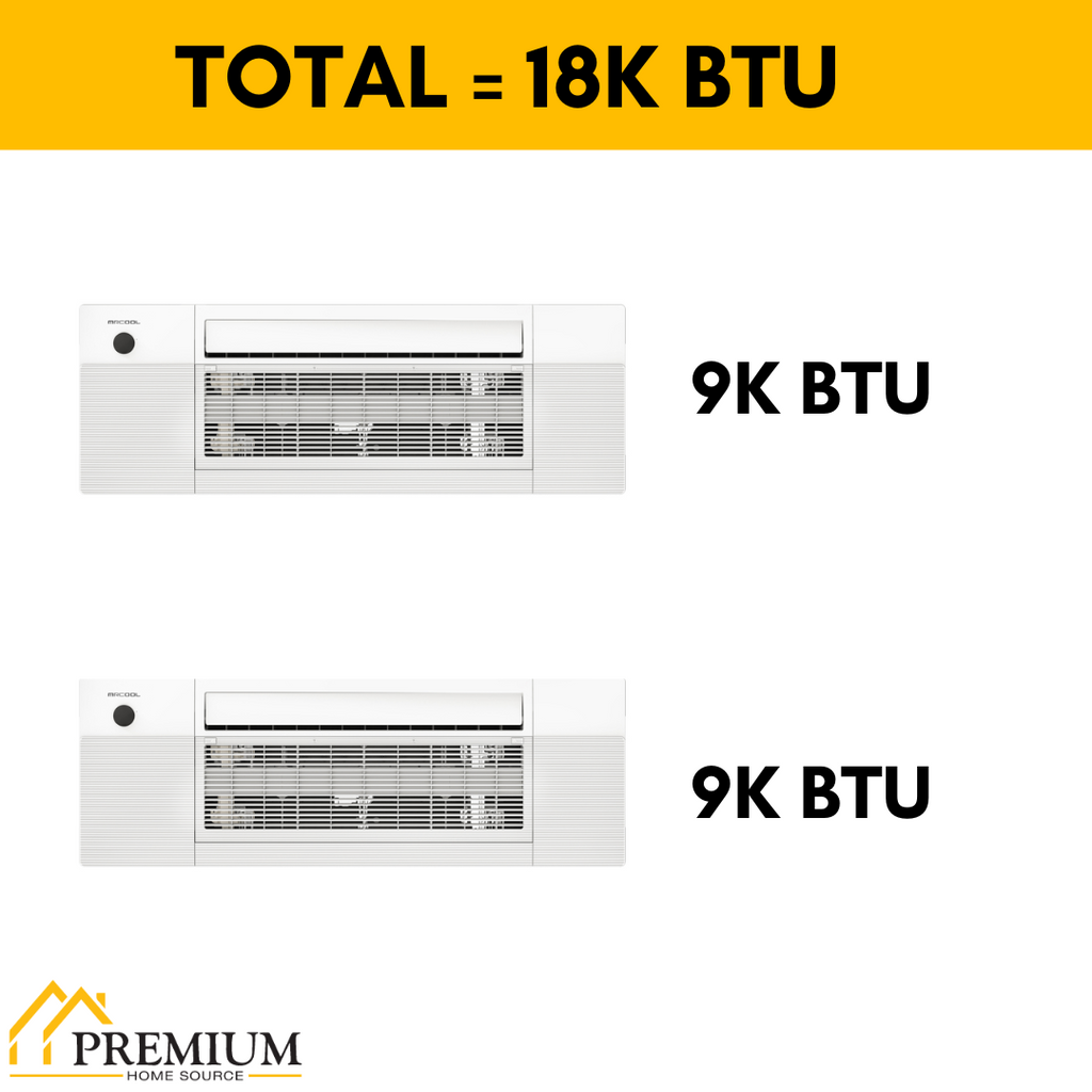 MRCOOL DIY Mini Split - 18,000 BTU 2 Zone Ceiling Cassette Ductless Air Conditioner and Heat Pump with 25 and 35 ft. Install Kit, DIYM218HPC00C08