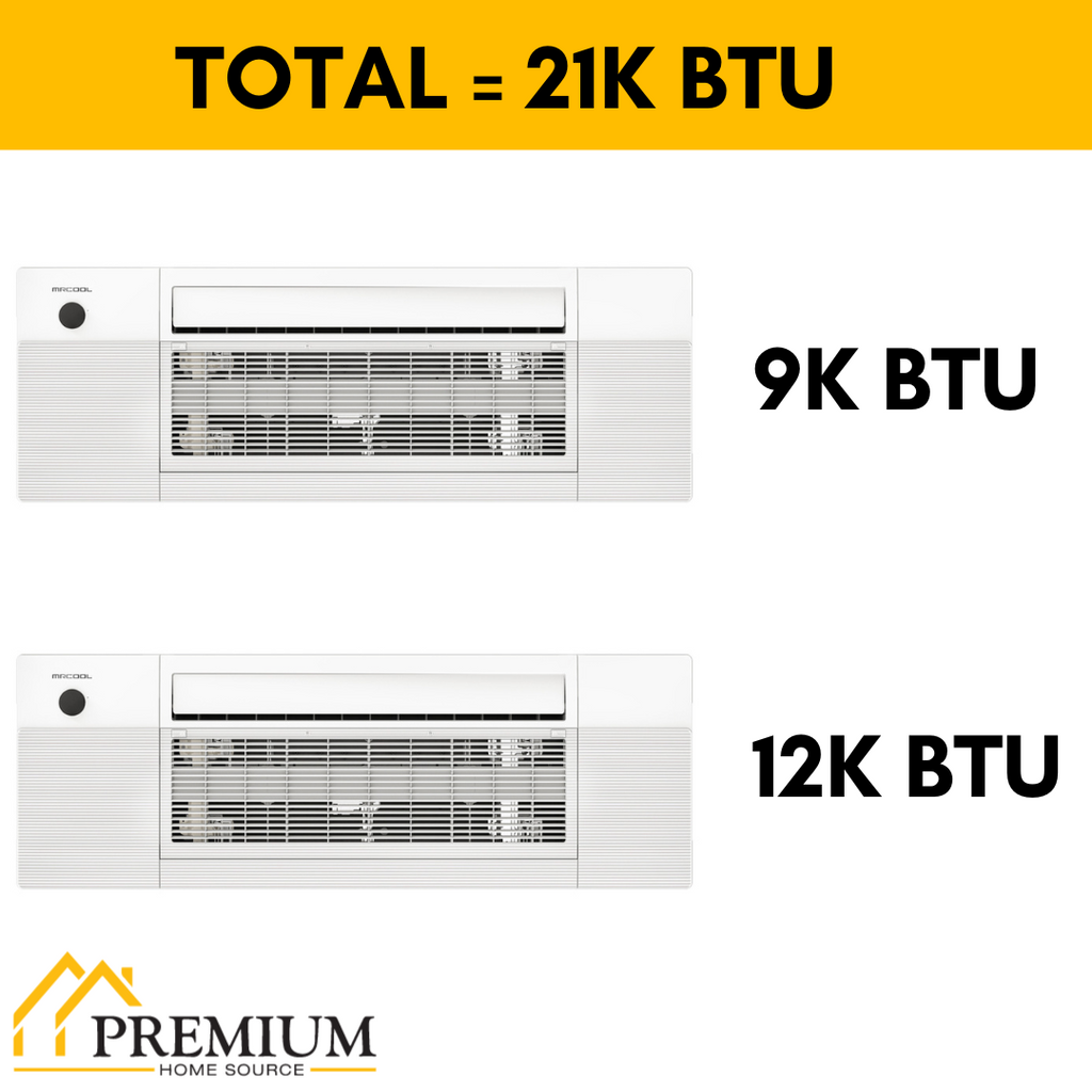 MRCOOL DIY Mini Split - 21,000 BTU 2 Zone Ceiling Cassette Ductless Air Conditioner and Heat Pump with 16 ft. and 25 ft. Install Kit, DIYM218HPC01C01