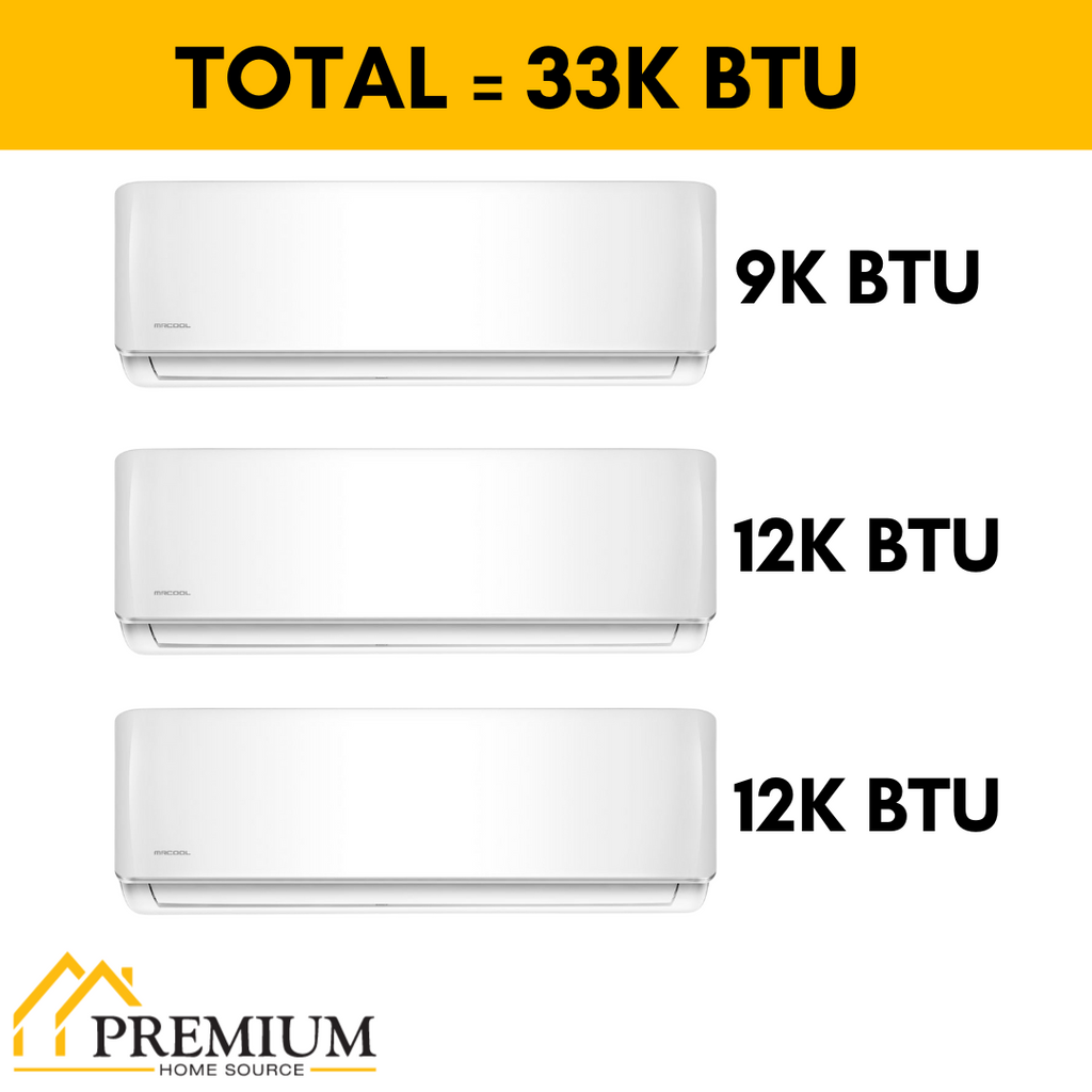 MRCOOL DIY Mini Split - 33,000 BTU 3 Zone Ductless Air Conditioner and Heat Pump with 50 ft. Install Kit, DIYM327HPW02C74