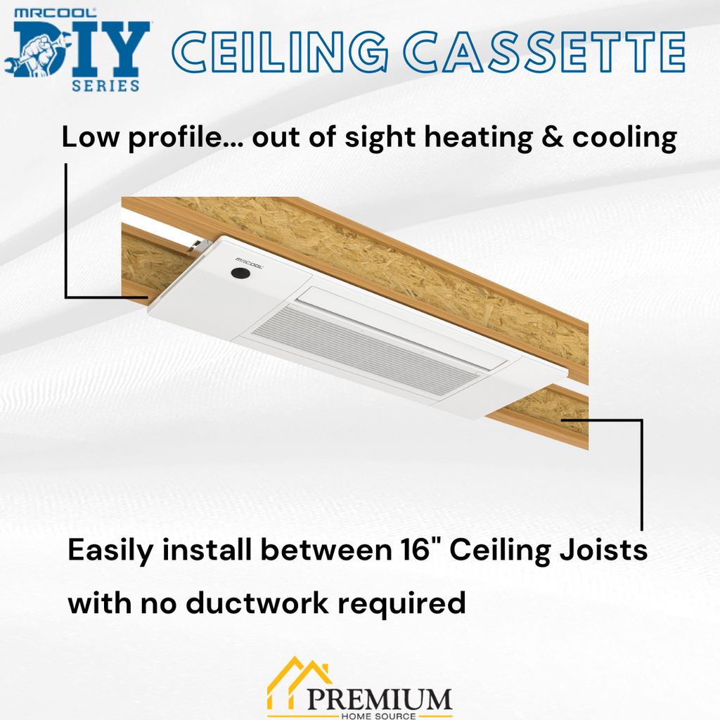 • Compact Ceiling Installation: The MRCOOL DIY Series OuttaSight 18k BTU Ceiling Cassette fits neatly within 16” ceiling joists for a clean and unobtrusive appearance.
