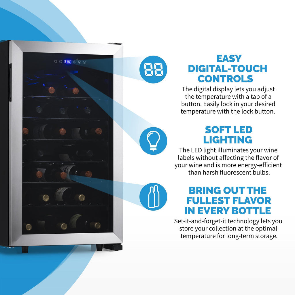 Newair Freestanding 50 Bottle Compressor Wine Fridge in Stainless Steel, Adjustable Racks