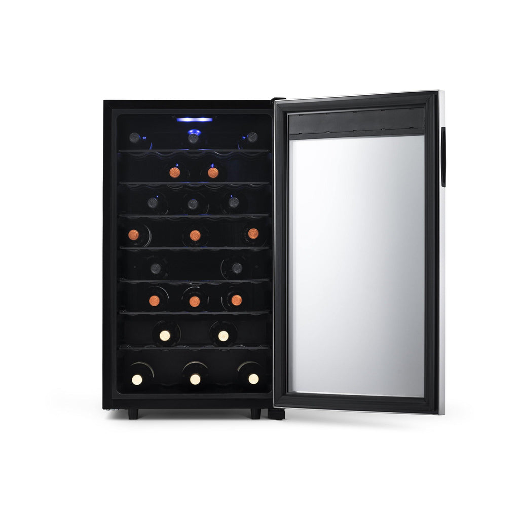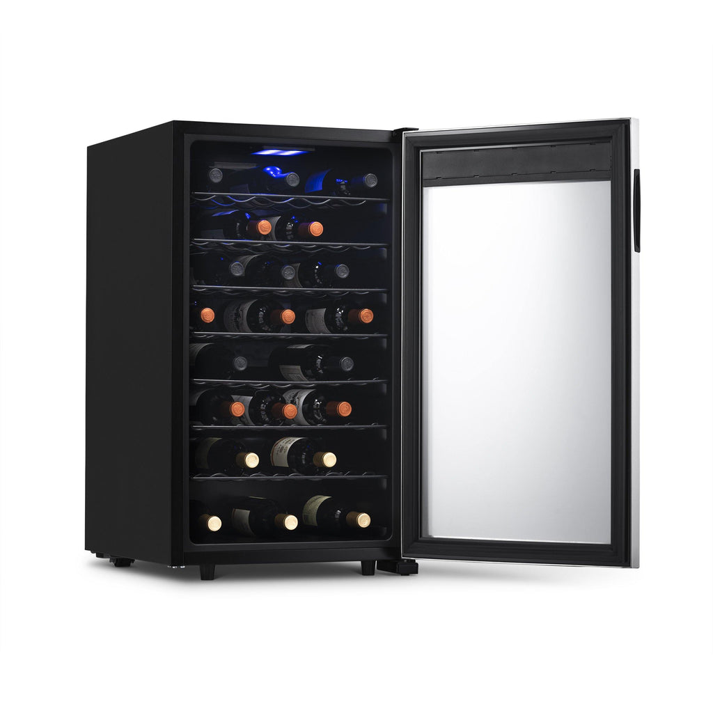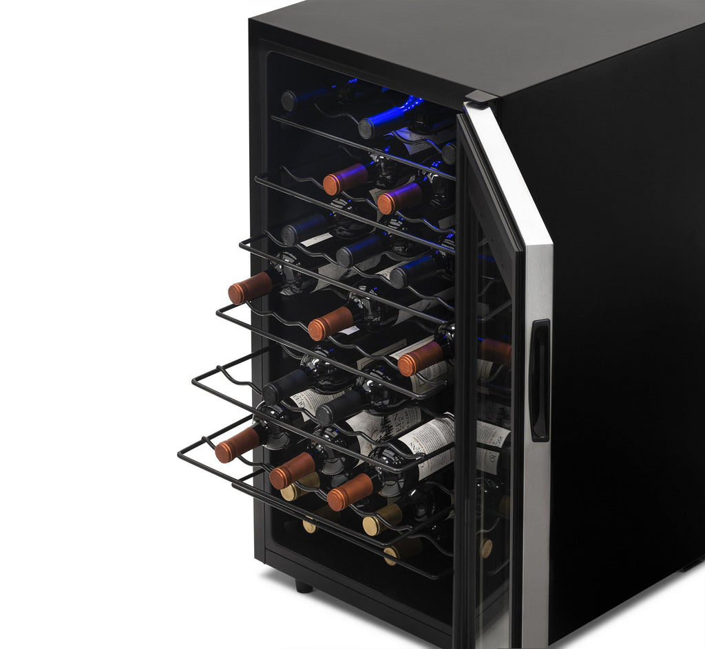 Wine’s flavor is delicate, which is why the NewAir baseline wine fridge features a soft LED light that illuminates your collection without emitting heat like a standard lightbulb. Remove and adjust the sleek black metal racks to accommodate regular or larger-than-standard bottles.