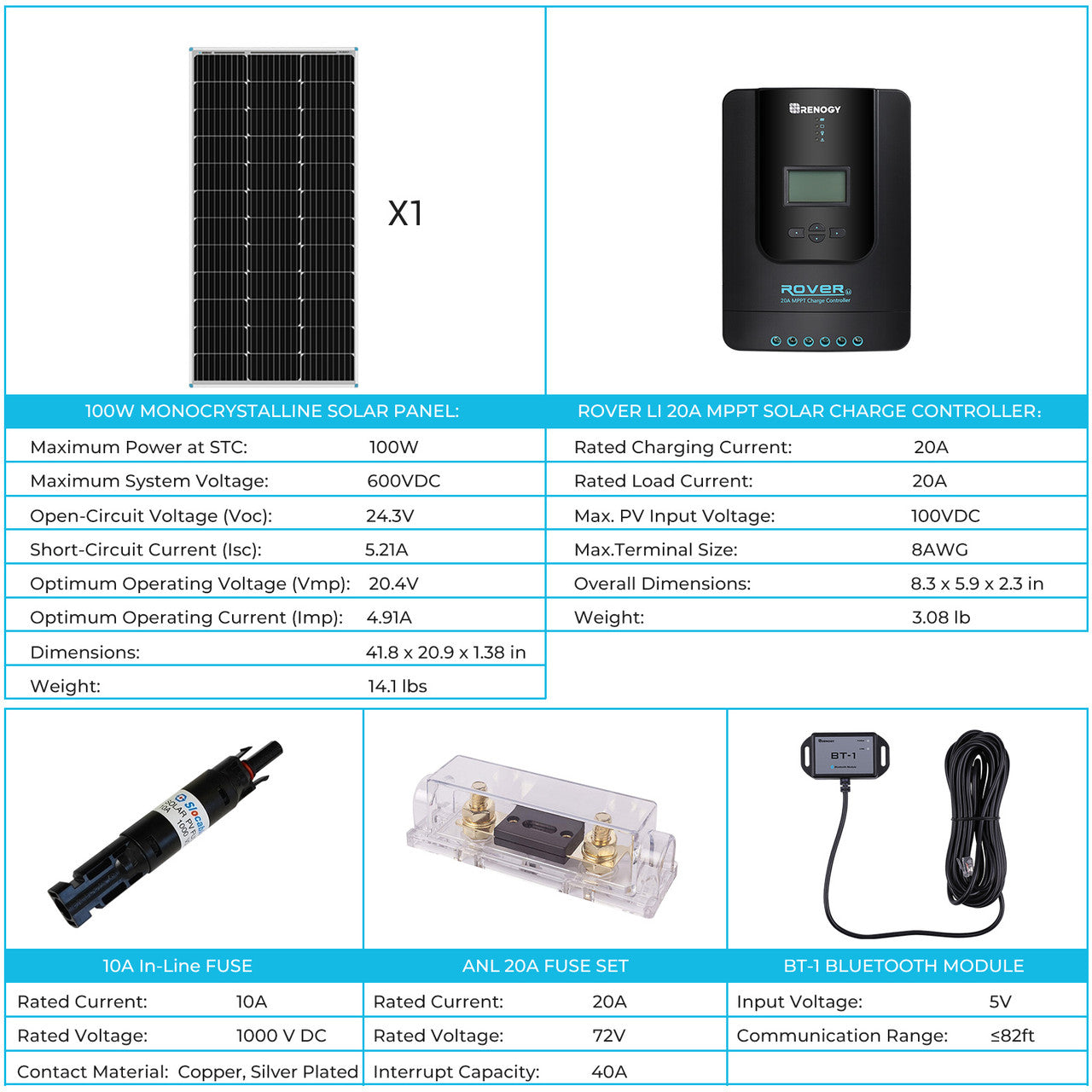 RENOGY 100W MONOCRYSTALLINE SOLAR PANEL