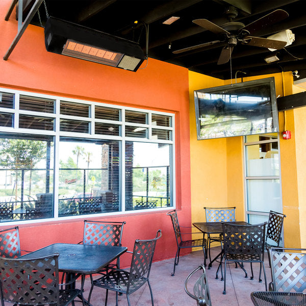 If you are looking to extend your patio seating season and increase the profits you can achieve from your outdoor spaces, this Schwank MO-2135-LP liquid propane black outdoor patio heater will help you do just that! It is made with durable black coated type 316 stainless steel to stand up to the elements and it can be mounted either overhead or on a wall to provide non-intrusive heat right where you need it (mounting hardware sold separately).