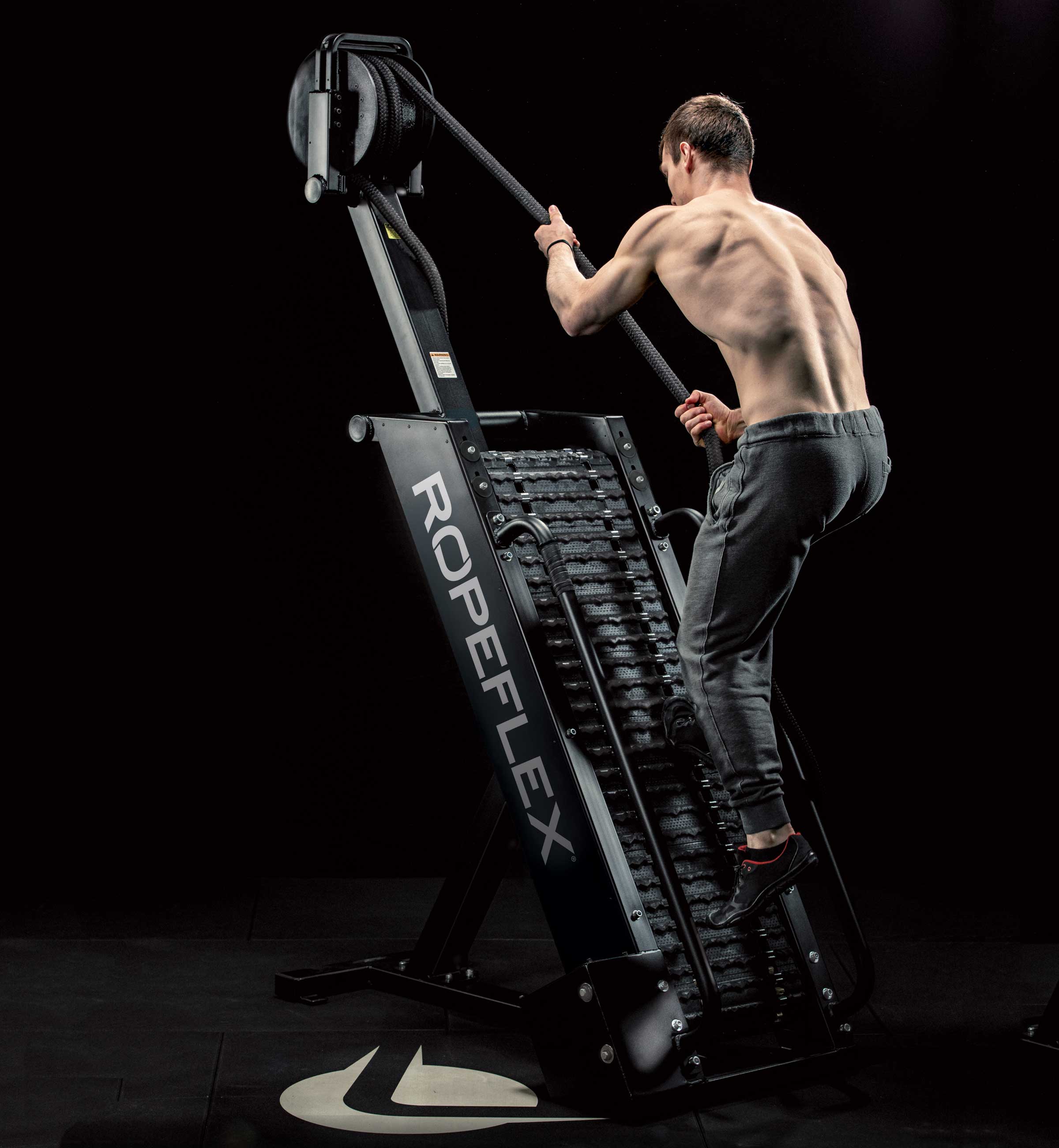 The one-of-a-kind engineering combines ROPEFLEX trusted progressive resistance technology with the ultra-effective cardiovascular benefits of an integrated incline treadmill. Its versatile engineering is well-suited for beginner, intermediate, and advanced users, alike. The RX4400 provides a unique combination of ergonomic, natural, and functional movements as well as the benefits of low-impact weight-bearing incline training and continuous resistance. Its modular design accommodates independent use of the treadmill or rope-exercise. Thus, RX4400 is just as effective for separate cardio or resistance training, as well as the ultimate combination of both. Used properly, this machine is as safe as walking – but it is up to 5 times more effective than conventional resistance training and cardio combined! The flexibility of rope training allows for endless exercise variety and full range of motion without the risk of high-impact training. RX4400's striking design is a call to action; a bold new alternative to the monotony of traditional exercise – Do you dare take the challenge?