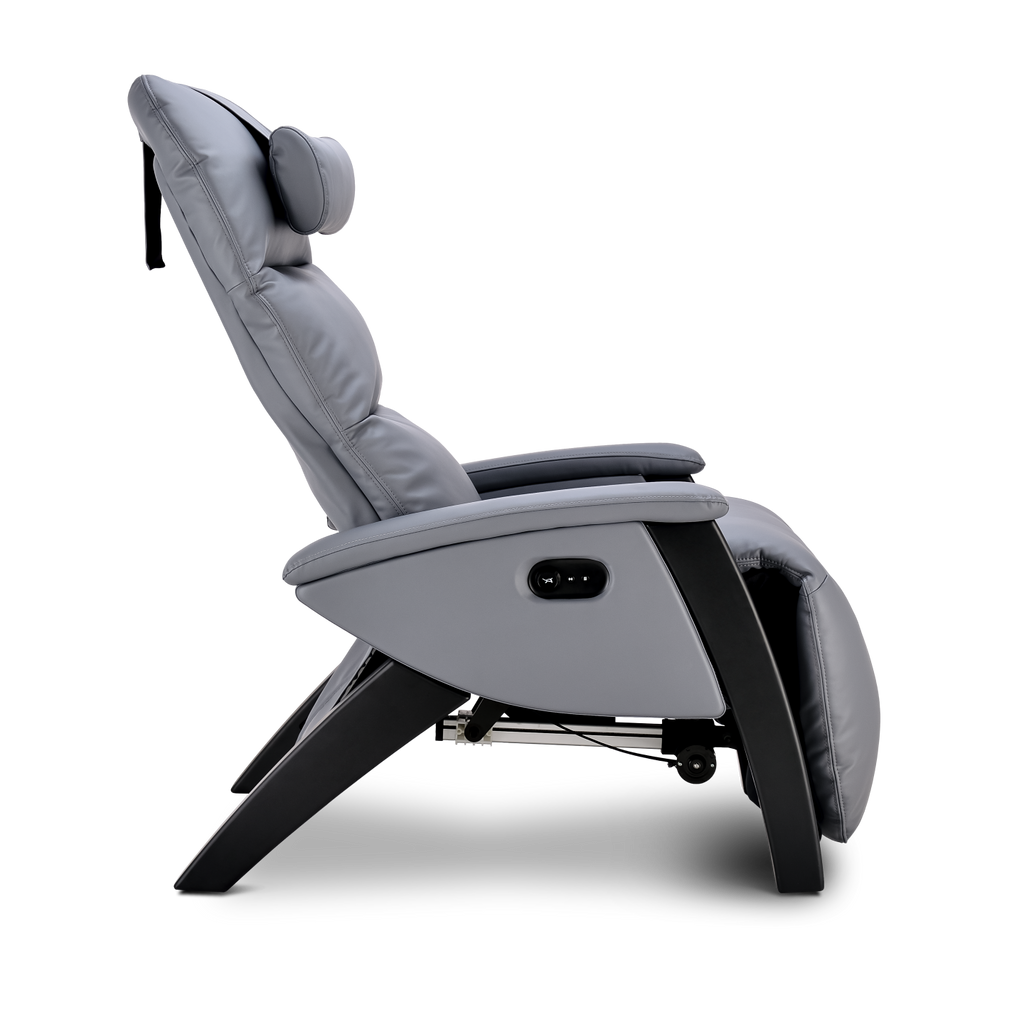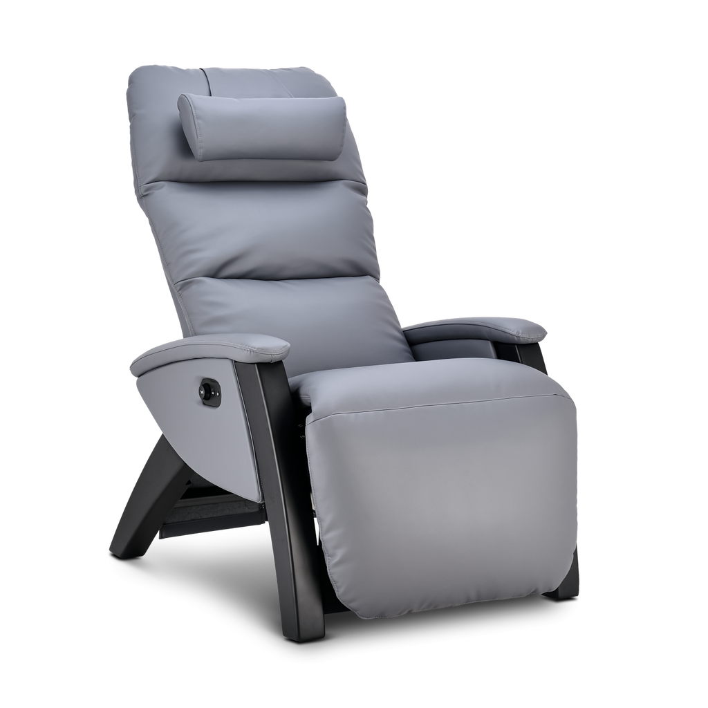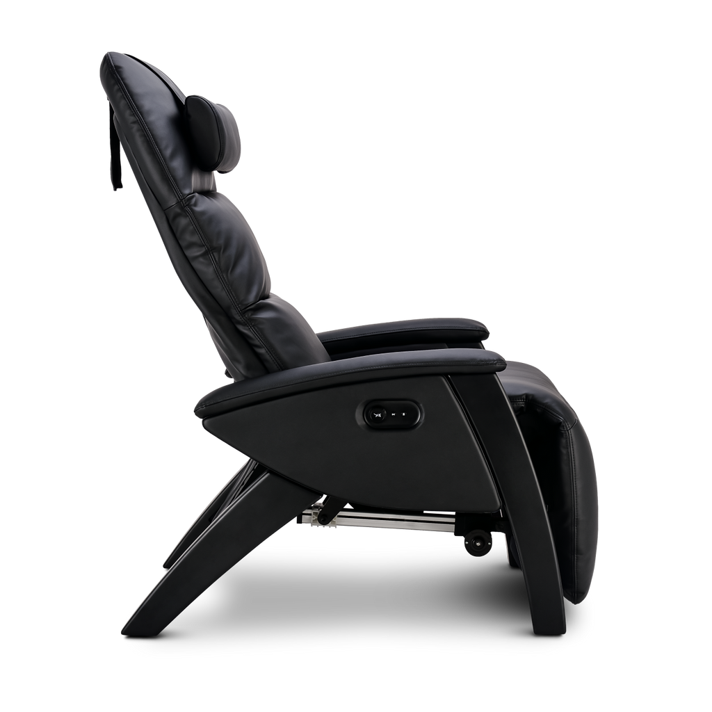 Our entry-level zero gravity recliner chair has all of the benefits of zero gravity, with synthetic hyde, hand-carved wood base, lumbar vibration massage and heat, relaxation, self-care, quicker recovery, and back health are here.