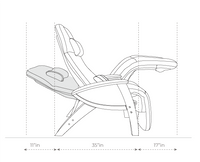 The classic ZGR offers quality, comfort, and style. Hand-stitched vegan synthetic hyde, hand-carved, hand-stained solid wood base, vibration massage and heat all deepen the restorative zero gravity experience. The ZGR can be used as a traditional recliner, but its magic is in Zero-Gravity position, where it helps your body literally decompress from the stress that gravity puts on you every day. Gravity keeps us grounded, but it also weighs us down, compressing discs, tensing up other muscles that have to compensate, and it takes time to recover. In our Zero Gravity position, gravity isn't pushing you from the top down, so your discs can re-hydrate, and your weight is evenly distributed allowing muscles to relax in a way that no masseuse, chiropractor, acupuncturist, or pilates could ever accomplish.