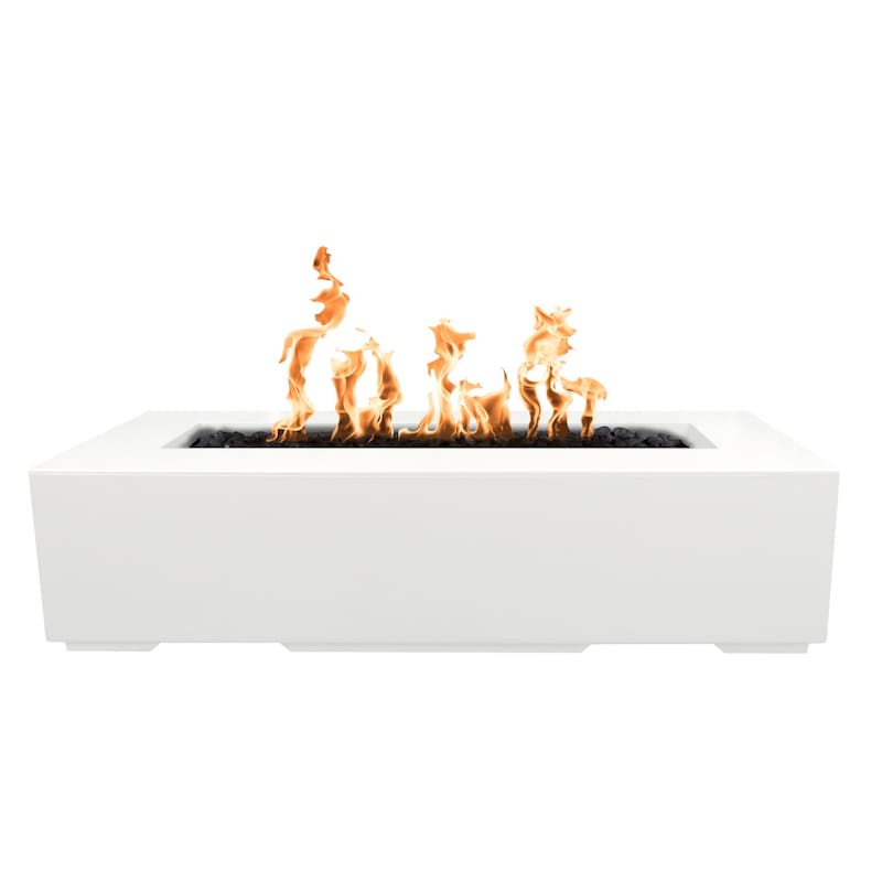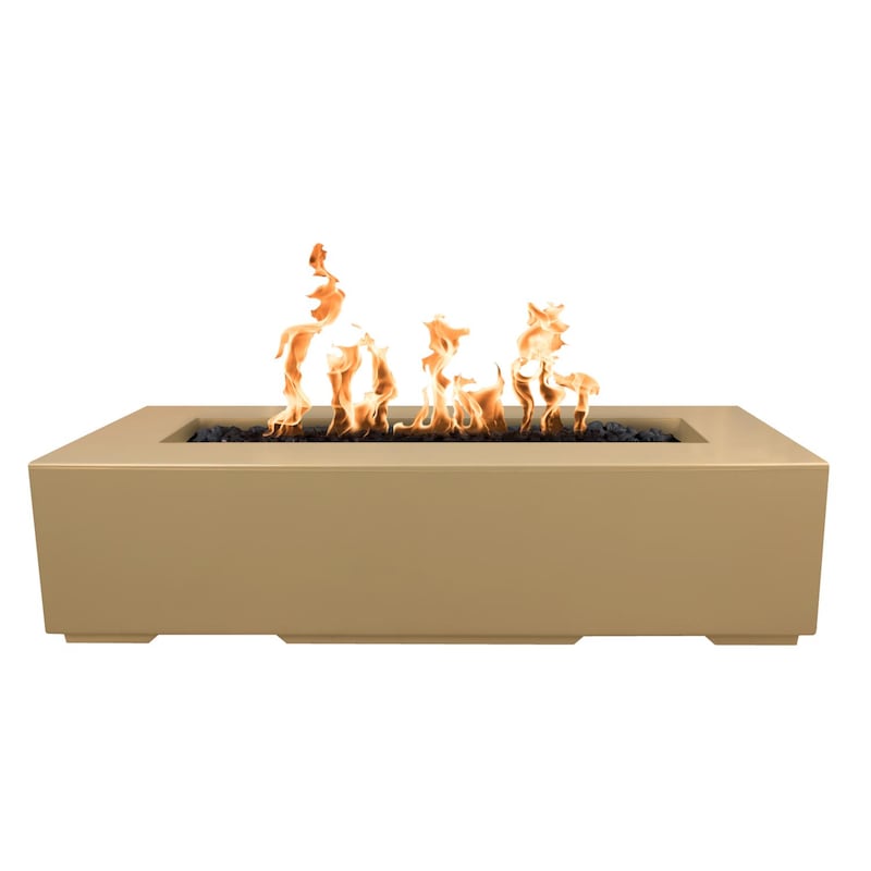 Add a slice of royalty to your outdoor space with the prestigious Regal fire pit from Top Fires by The Outdoor Plus. The Regal fire pit is handcrafted from glass fiber reinforced concrete (GFRC) for strength and durability with an ash color finish. Because the pigments are mixed in, the color is cast throughout the product and will not peel or chip off. GFRC products are made to last and designed to perform better than traditional concrete. This allows them to stand up to harsh environmental conditions like freezing temperatures and marine environments. The use of glass fibers for reinforcement means that it will not rust like steel and the glass fibers will prevent the product from cracking. GFRC offers superior strength while allowing for thinner construction which results in products that weigh considerably less than solid concrete. Use the included Lava Rock or upgrade to a beautiful selection of Fire Glass. If upgrading to Fire Glass, 25 pounds is recommended. The 304 Stainless Steel burner produces a maximum 65,000 BTUs. Key valve accepts half inch male fitting hose. This rectangular concrete fire pit has a surrounding area 48 W x 24 D x 13 H with a burning area of 34 W x 10 D x 2 H. Burner pan features multiple drainage holes for proper water runoff. This unit features match light ignition.