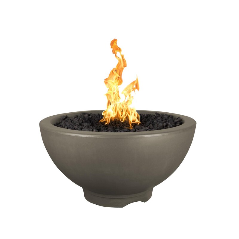 The Florence Fire Pit is a simple and classy design with its gorgeous cylindrical shape that will make a marvelous addition to your outdoor space. The Florence fire pit is handcrafted from glass fiber reinforced concrete (GFRC) for strength and durability with a black finish. Because the pigments are mixed in, the color is cast throughout the product and will not peel or chip off. GFRC products are made to last and designed to perform better than traditional concrete. This allows them to stand up to harsh environmental conditions like freezing temperatures and marine environments. The use of glass fibers for reinforcement means that it will not rust like steel and the glass fibers will prevent the product from cracking. GFRC offers superior strength while allowing for thinner construction which results in products that weigh considerably less than solid concrete. Use the included Lava Rock or upgrade to a beautiful selection of Fire Glass. If upgrading to Fire Glass, 55 pounds is recommended. The 304 Stainless Steel burner produces a maximum 65,000 BTUs. Key valve accepts half inch male fitting hose. This round concrete fire pit has a surrounding diameter of 42 inches and a height of 12 inches, with a burning area diameter of 25 inches. Burner pan features multiple drainage holes for proper water runoff. This unit features match light ignition.