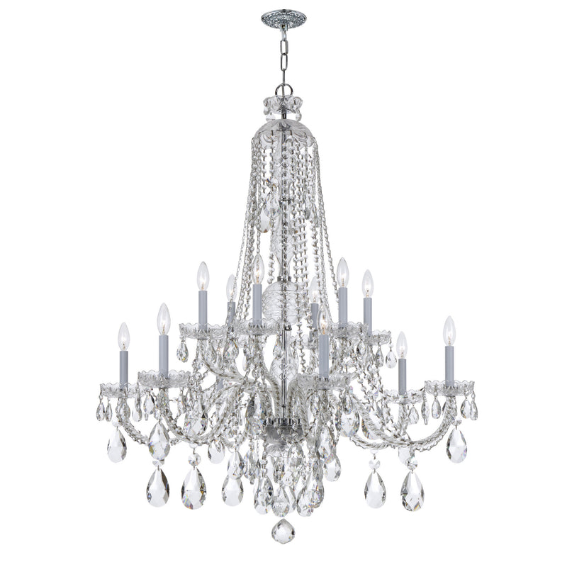 Traditional Crystal-12 Light Swarovski Strass Crystal Polished Chrome Chandelier 1112-CH-CL-S