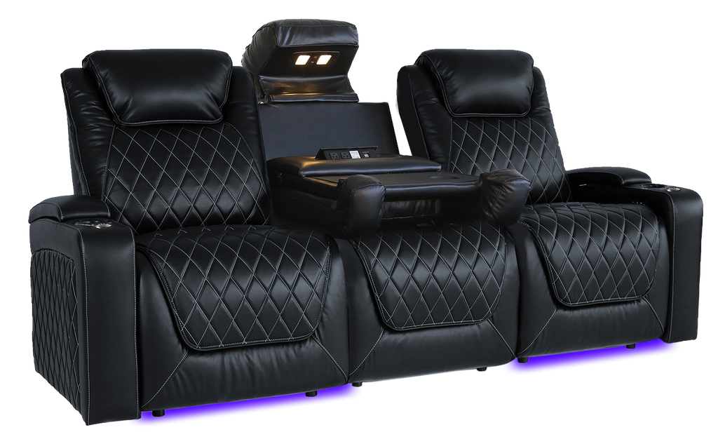 Power Headrest The Oslo Series luxury power recliners also come with power headrest. You can adjust the headrest that keep your head in the comfortable position to ensure you can still watch TV as you lie down. Power Control Take control of your comfort with our mechanical controls inside the armrest. The controls also have a USB port so you can charge all of your devices while enjoying pure luxury. Italian Nappa Leather Premium top grain Nappa leather 11000 on seating and armrest surfaces. Soft to the touch, extremely smooth, supple and durable. Power Lumbar Suport Ergonomically designed, with Power Lumbar Support, be assured that those long movie nights will always be comfortable. Hidden Arm Storage In your home theater, you want a place close at hand to keep all of your remotes, snacks and other devices. The convenient hideaway storage keeps everything within easy reach. Contrast Diamond Stitching*