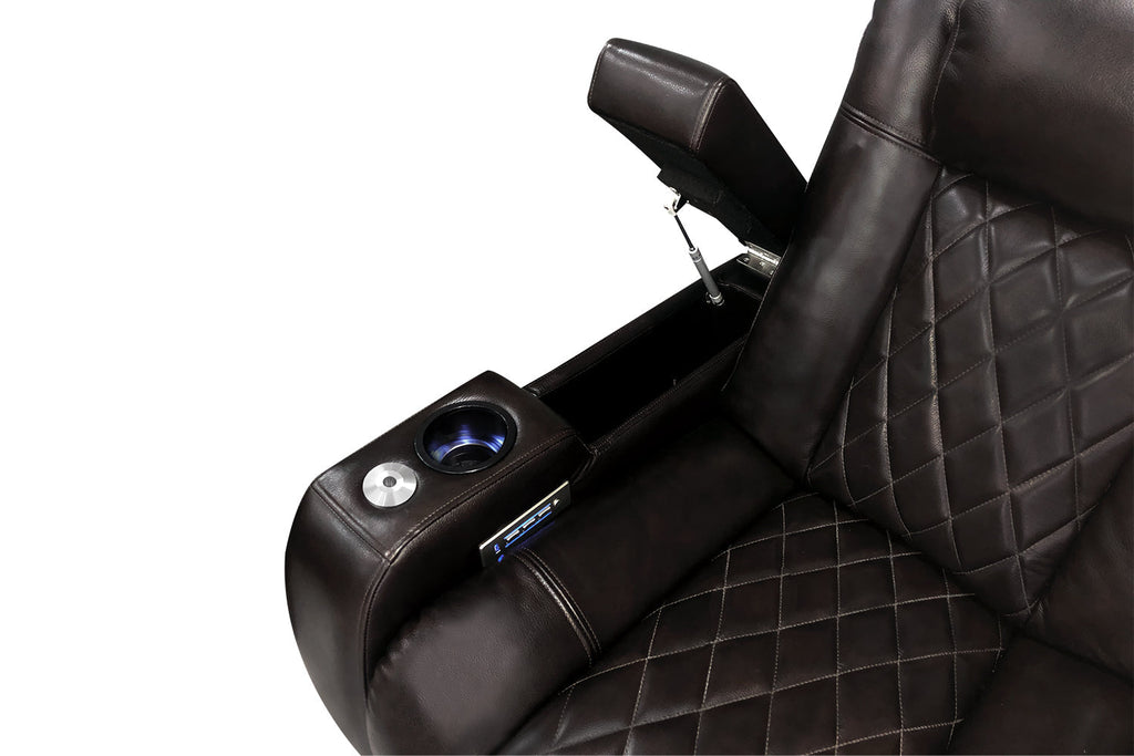 Each Tuscany comes with Hidden Arm Storage that is powered by air pistons for a smoother open & close experience. Hide away your trays, remotes and tablets and have them accessible to you always!