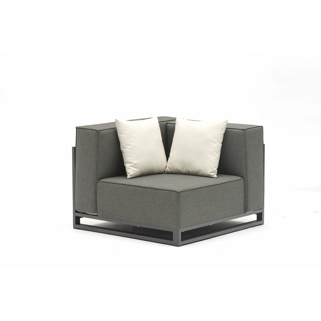 Sensation Indoor/Outdoor Modular Armless Corner Grey Acrylic Fabric with TPU coating, Grey Aluminum frame. Include one decoration pillow 18"x18" in white.