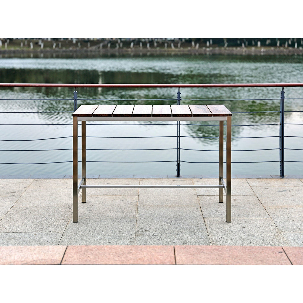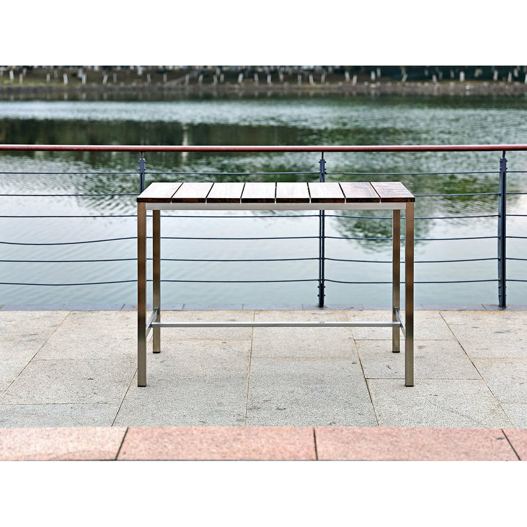 Experience tranquility and luxury this Summer with our Stone Outdoor Bar table. Designed with recycled teak wood and stain-steel brush finish legs.