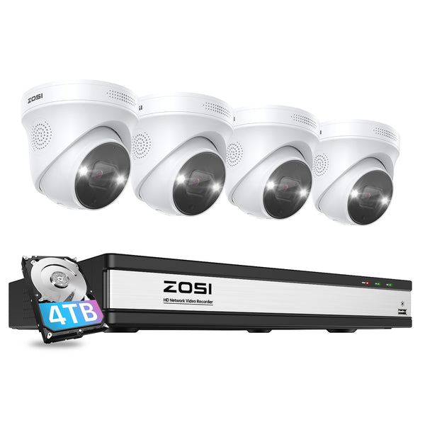 Zosi C225 4K 4 Camera 16CH PoE NVR Security System + 4TB Hard Drive