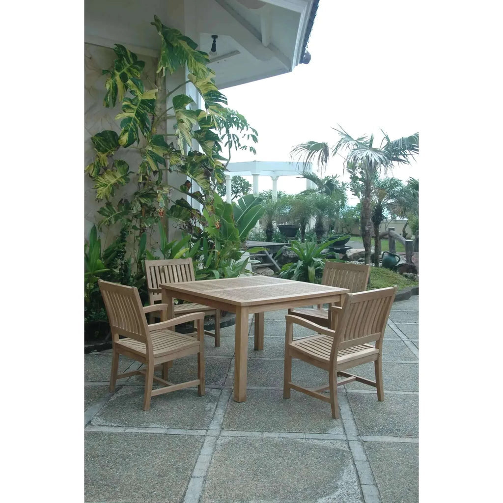 Elevate your outdoor dining experience with the Anderson Teak Windsor Rialto Armchair 5-Pieces Dining Set. Indulge in the luxury of premium teak wood as you gather around the spacious Windsor 47" Square Table, accompanied by four Rialto Dining Armchairs. Crafted for both style and endurance, this dining set invites you to relish in the beauty of the outdoors while savoring memorable meals.
