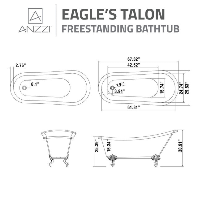 ANZZI 67.32” Diamante Slipper-Style Acrylic Claw Foot Tub FT-CF131FAFT-CH