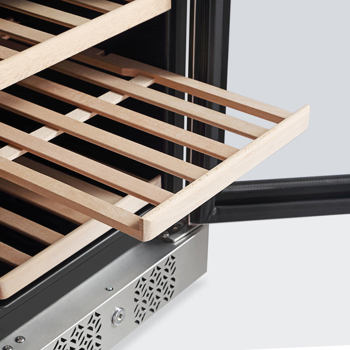 Advanced Cooling System Empava wine cooler refrigerator is engineered with a powerful high-efficiency compressor and 2 convection fans to evenly distribute cold air throughout the cabinet so that the whole cooler can be maintained in ideal climate settings. Ensure that every bottle can keep the same humidity, preventing hot spots, frosting, and uneven cooling.
