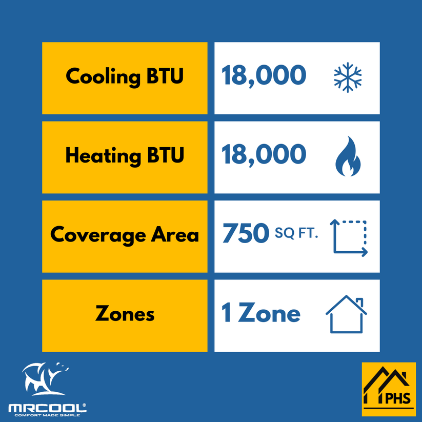Introducing the 5th Gen MRCOOL® DIY® 18K BTU Single Zone Mini-Split Air Handler for year-round heating and cooling in spaces 500 to 750 sq. ft. Customize comfort with wireless remote, SmartHVAC app, or voice commands. Industry-leading warranty for reliable, energy-efficient performance.