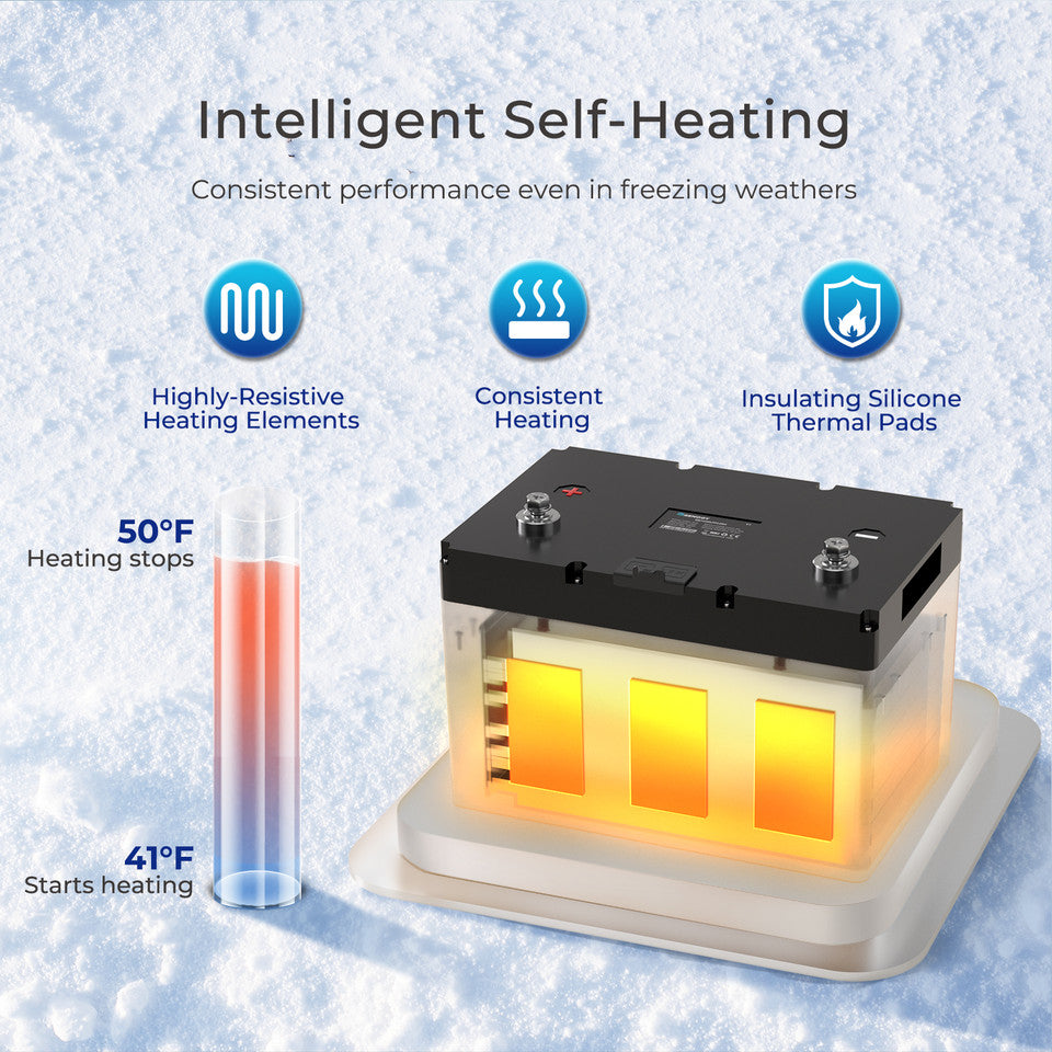 100Ah Smart Lithium Iron Phosphate Battery w/ Bluetooth & Self-Heating Function
