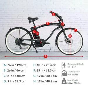 Tracer 500W 26" Omega Men's Beach Cruiser Electric Bike MB-EB-OMEGA-M-MBK/ BK