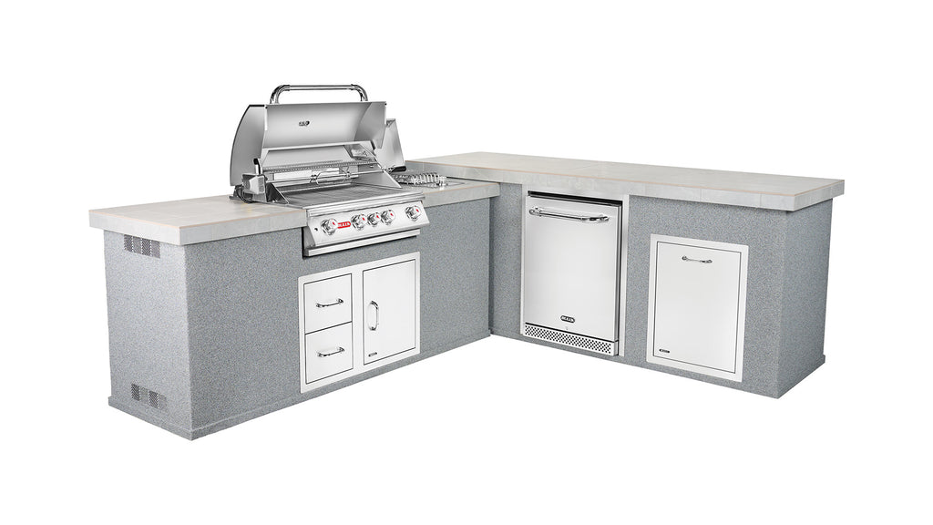 The Versa Q is the latest offering from the Bull Outdoor Kitchen Collection. This versatile Outdoor Kitchen has many flexible layout options that will maximize your entertainment space in your backyard. The two sections can be made into a right or left L-Shape angle configuration or be separated as two parallel standalone pieces. The Versa Q is only available in Quartzsite Bases