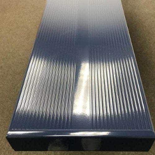 Basic framing is all welded formed angle with bolted angle bracing and horizontal bracing to maximize bleacher strength for end shift loads. Framing is spaced on six foot centers. Treated 2"x 4" wood runners are bolted to the bottom of each frame to provide improved stability of soft surfaces. Rubber foot pads may be substituted upon request. Steel under structure is powder coat painted black.