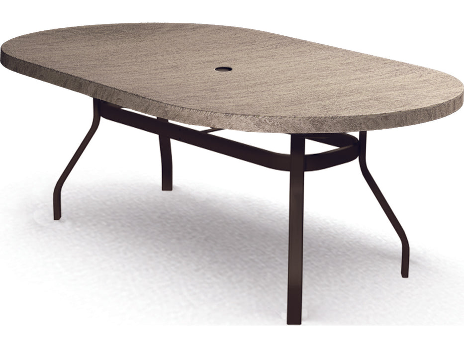 1x Slate Aluminum 84''W x 44''D Oval Dining Table with Umbrella Hole