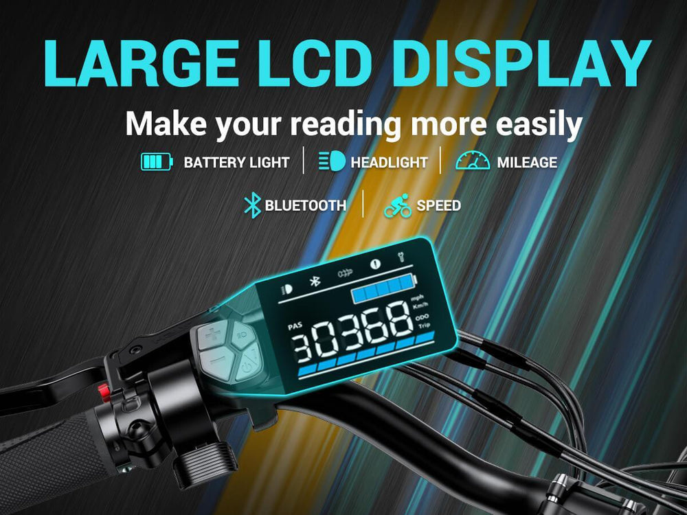The upgraded 27.5" x 2.25" wide Chao Yang puncture-resistant fat tires offer enhanced performance and a cooler appearance. They provide improved grip and traction on rugged roads, easily handling bumps, rocks, snow, beaches, hills, curbs, and more.