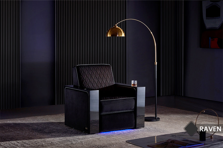 Finished with the proprietary Black Diamond process, Valencia’s Piano Black Wood waterfalls over the armrests creating a sense of opulence.