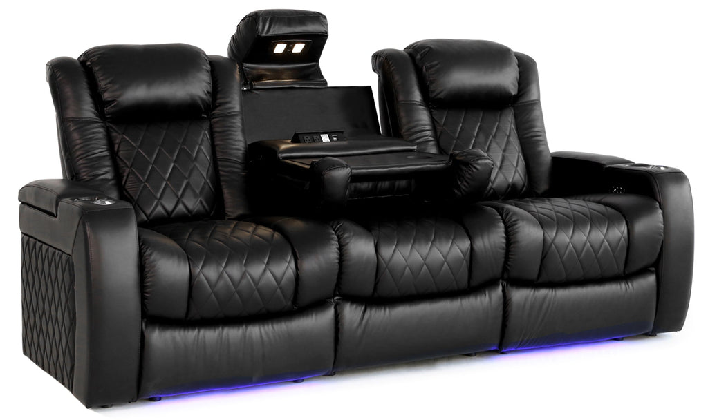 Combining design and function, the Tuscany XL Console provides luxury through its supple leather, cozy cushions, supportive headrest and a center console that holds your favorite glass of wine and food platter. Both the left and right end seats are full power recliners with power lumbar and headrest adjustability. Customization is possible so tailor as you see fit and enjoy the ultimate home theater experience with the Tuscany XL Console.